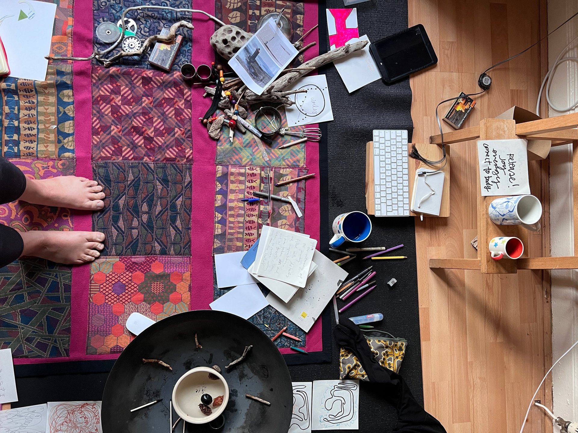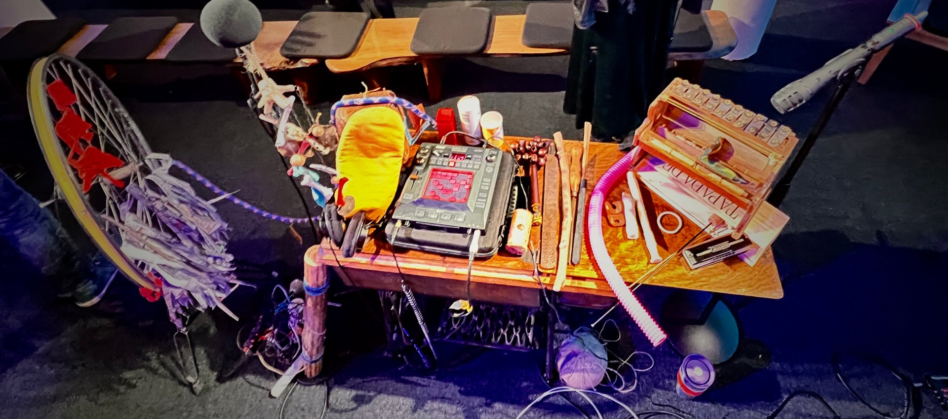 In my interdisciplinary practice, sound, movement, words, reclaimed materials and objects play, alchemising and sparking spontaneous narratives that unfold in real time.