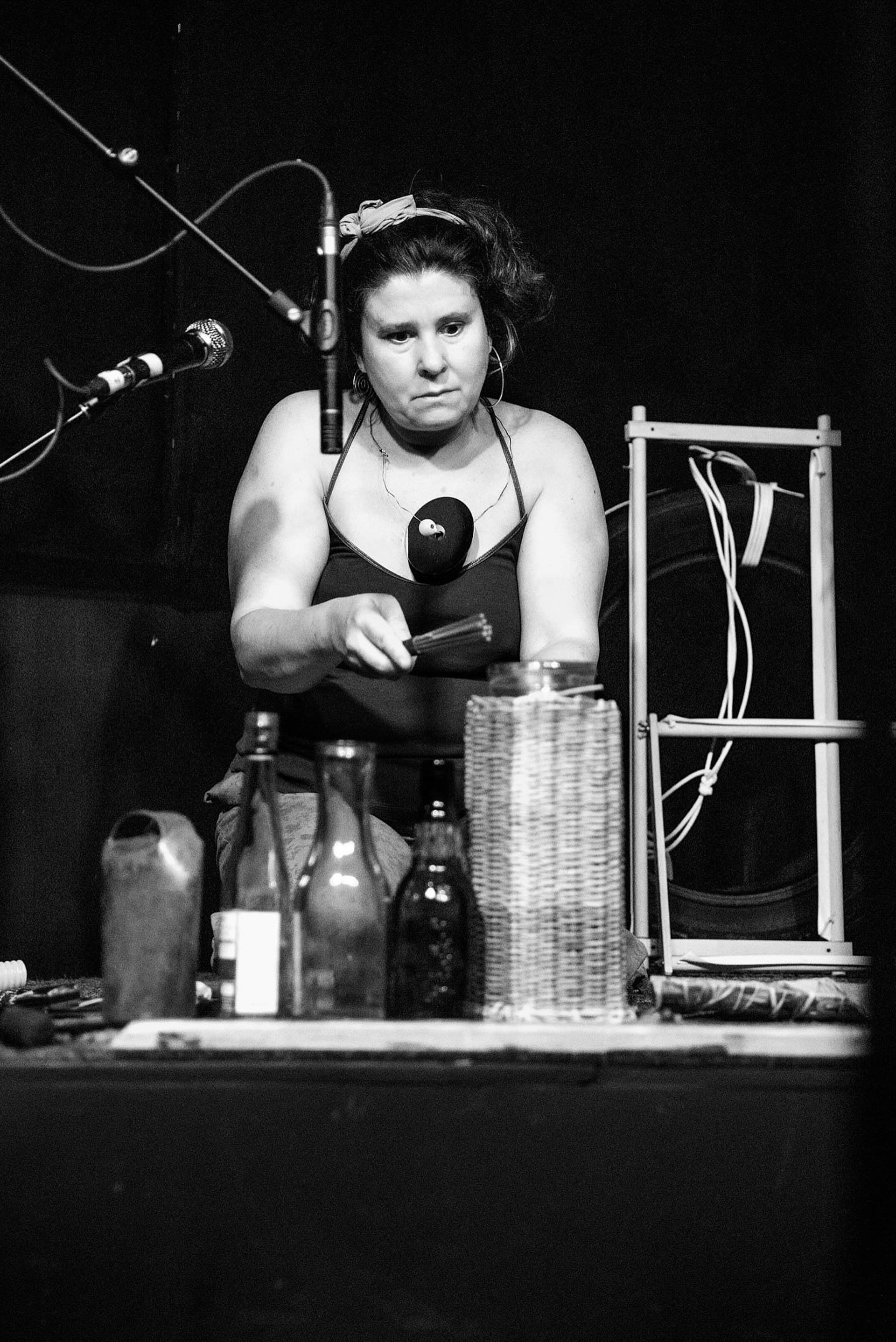 I explore free-improvising sound making with objects, spoken word, instruments, vocalising, and movement, weaving unscriped choreographies overlaying narratives in mixed media shapes.
